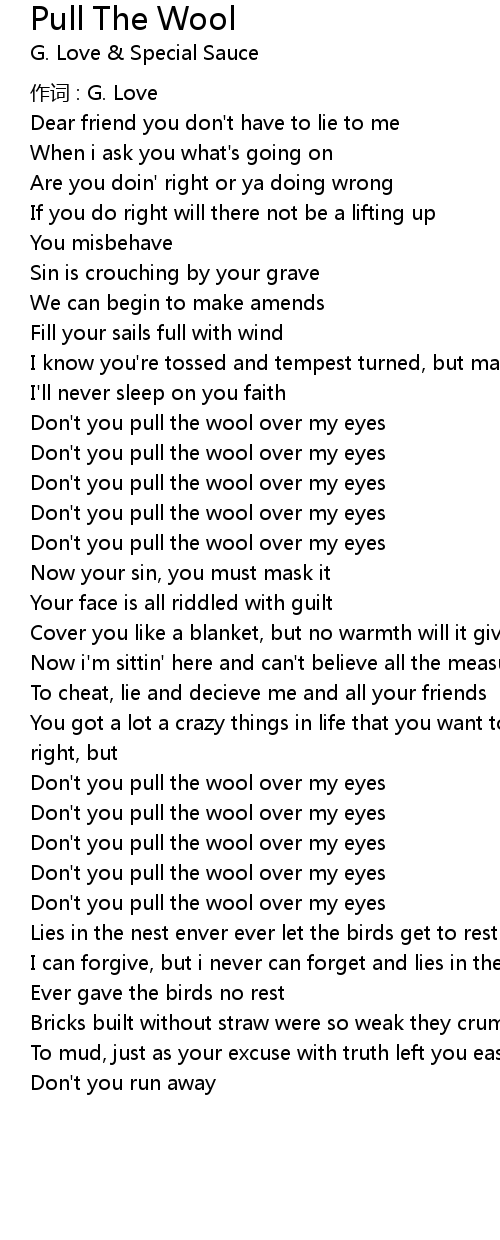 | Don' t you pull the wool over my eyes | |