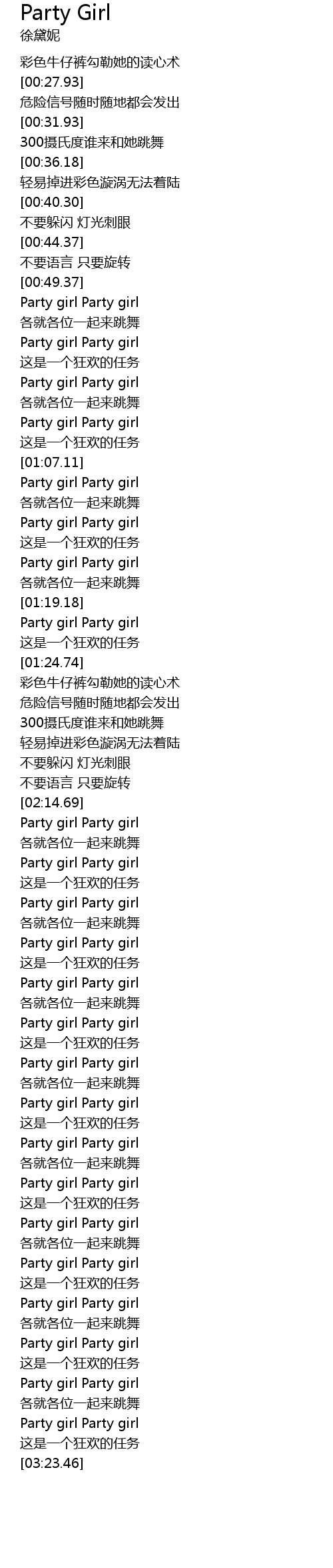 | [03:11.33] | Party girl Party girl |