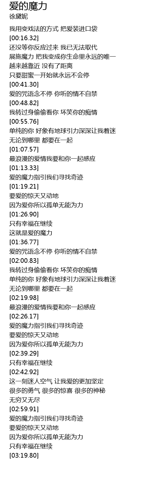 | [00:41.99] | 爱的咒语念不停 你听的情不自禁 |