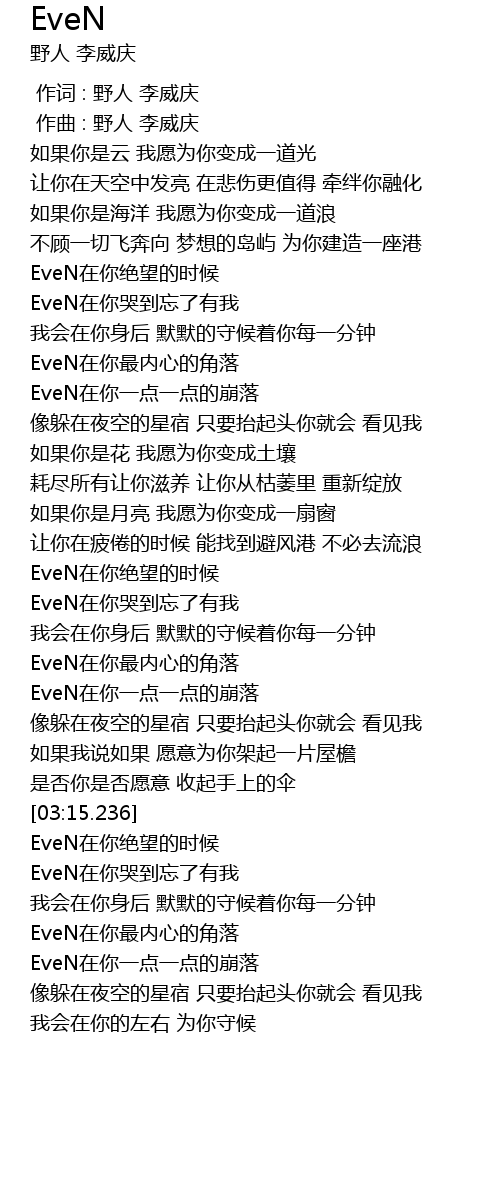 | [03:21.776] | EveN在你哭到忘了有我 |