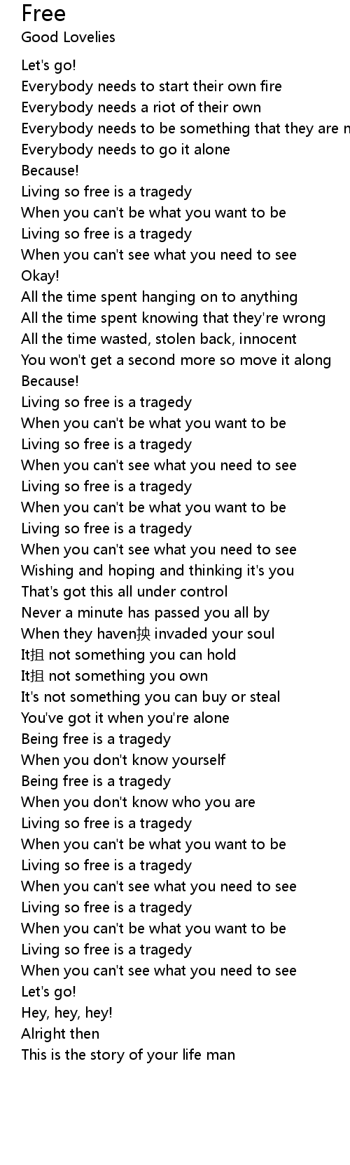 | [00:43.42] | Living so free is a tragedy |