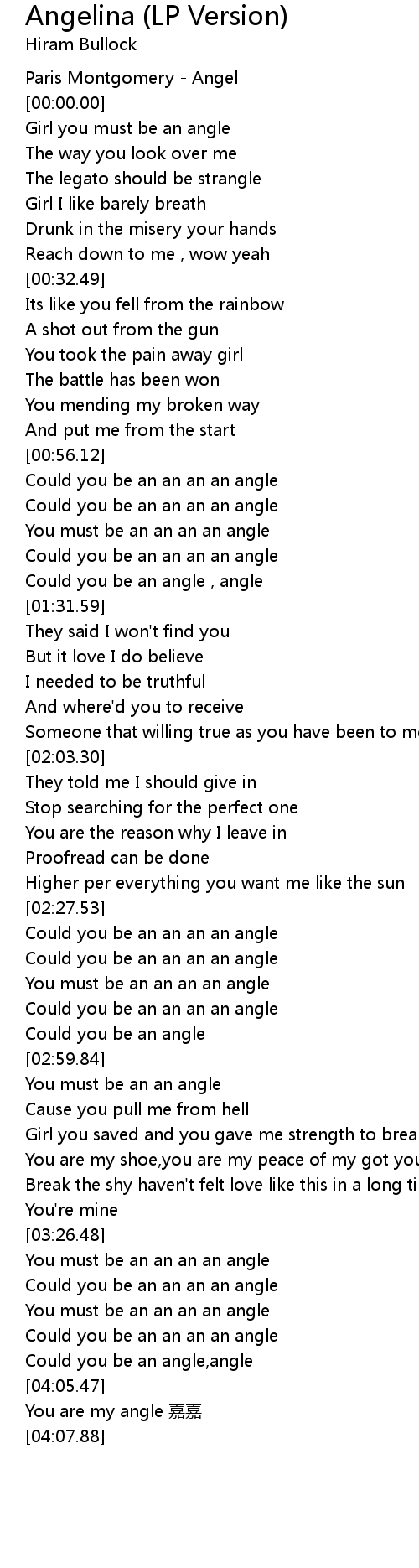 | [01:09.72] | You must be an an an an angle |
