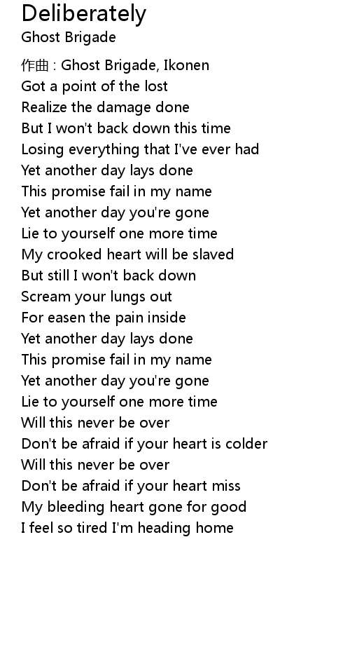| 歌曲 | Deliberately |