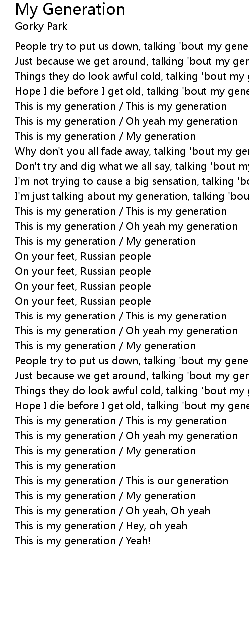 I'm not trying to cause a big sensation, talking 'bout my generation |