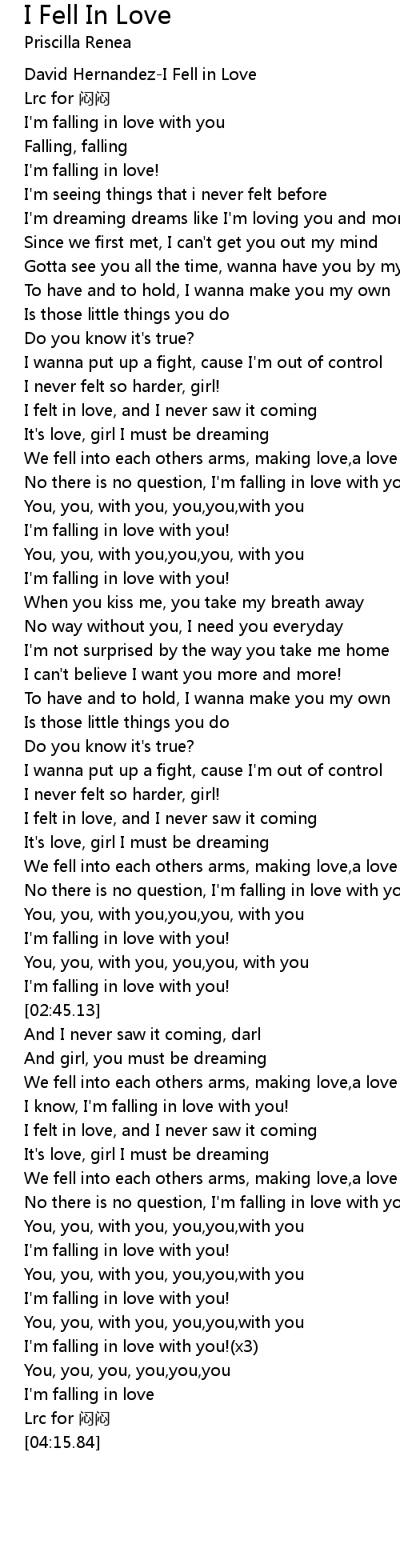 | [03:01.74] | I felt in love, and I never saw it coming |