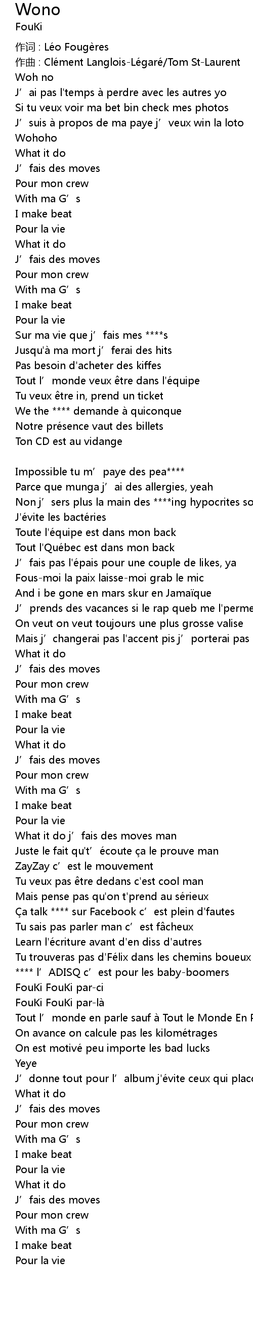 | 作词 : Léo Fougères | |