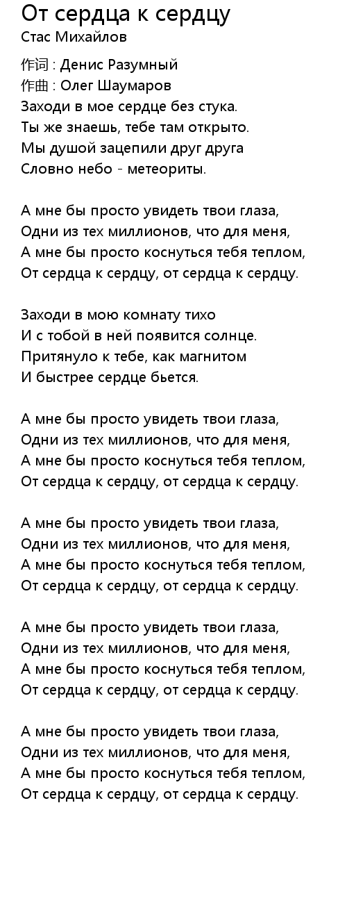 От сердца к сердцу, от сердца к сердцу. |