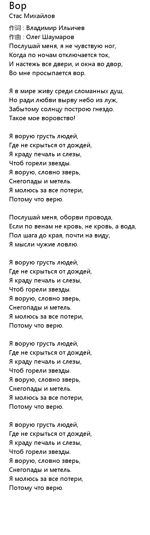 Я ворую, словно зверь, |