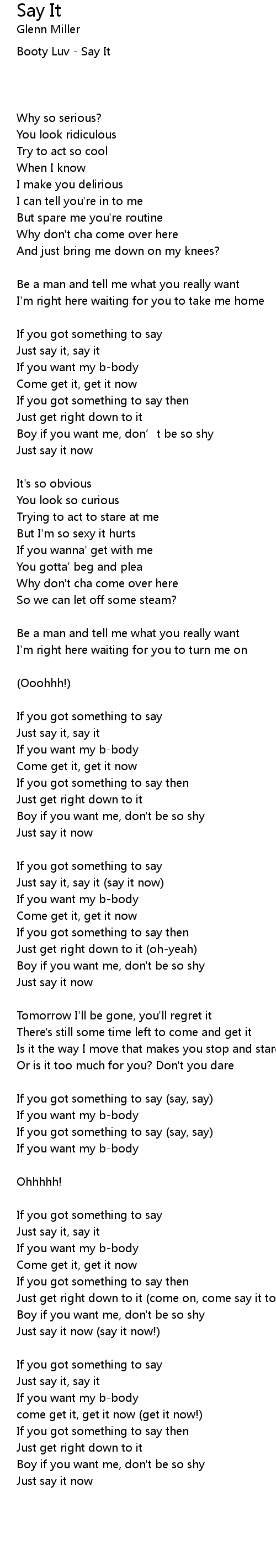| Just say it, say it say it now | |