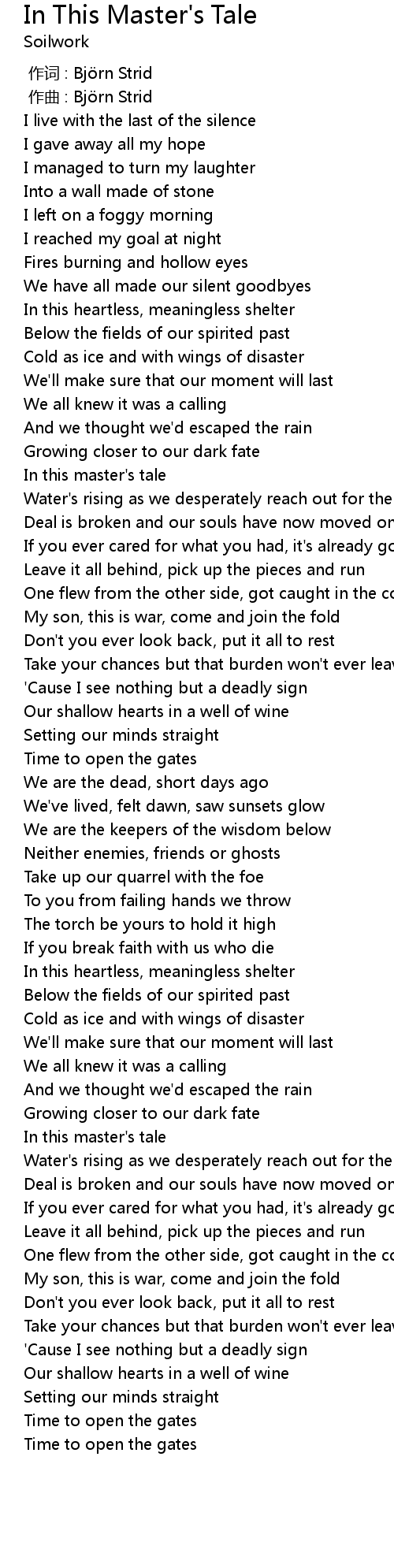 | [00:00.000] | 作词 : Björn Strid |