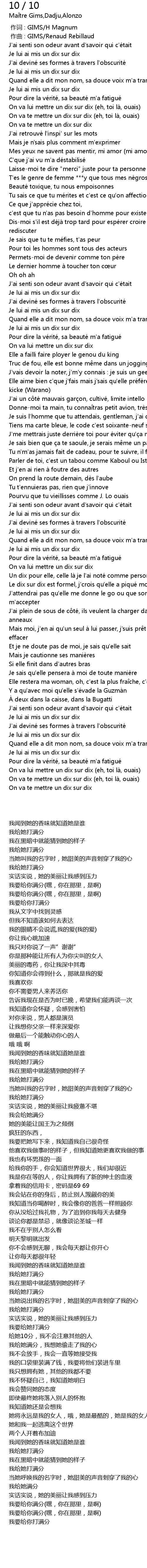 | [03:41.69] | On va lui mettre un dix sur dix (eh, toi là, ouais) |