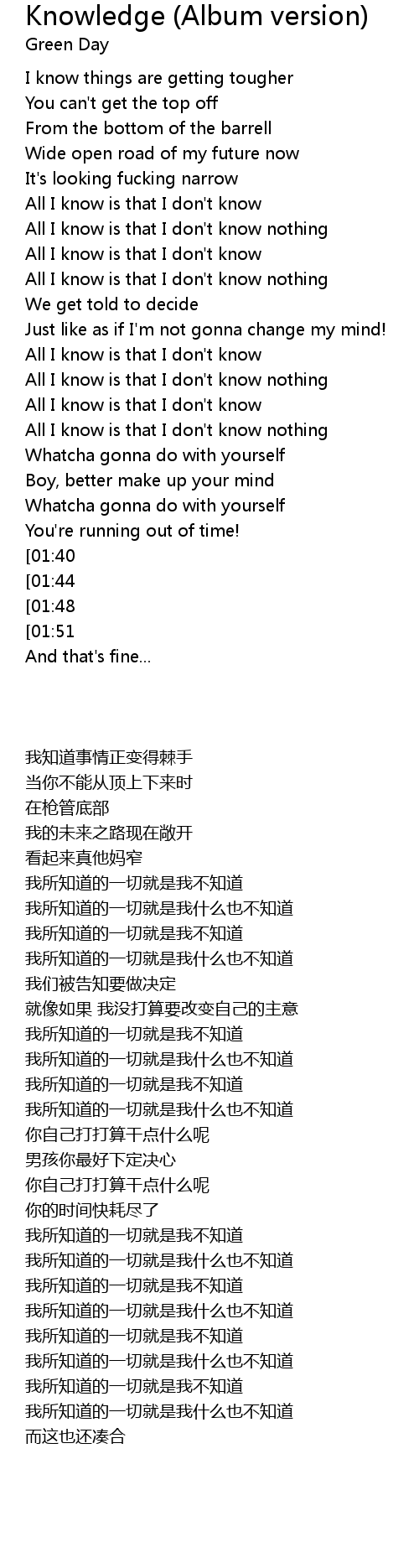 All I know is that I don't know nothing |