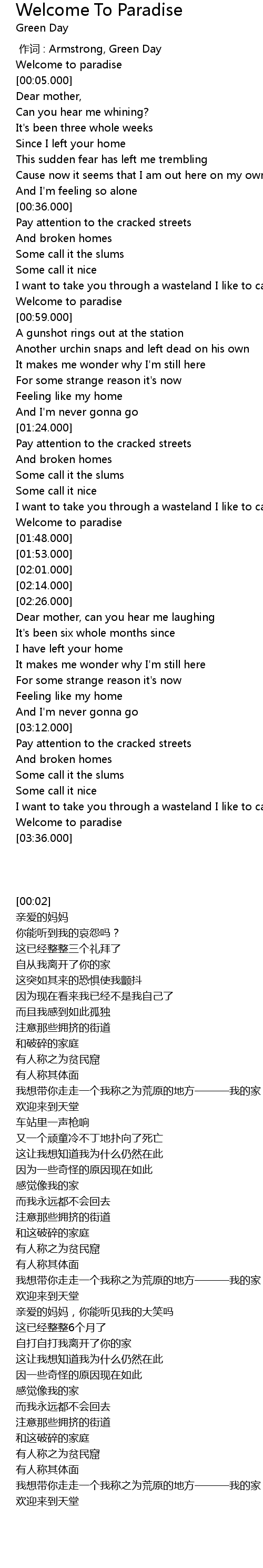 | [00:00.00] | zuò cí : Armstrong, Green Day |