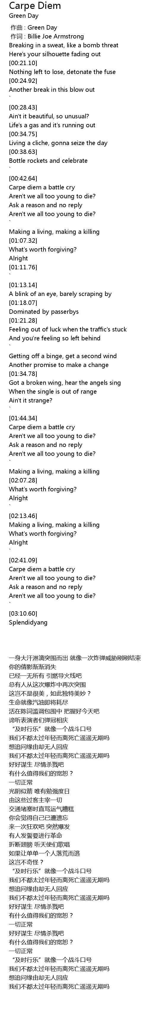 | [00:01.00] | 作词 : Billie Joe Armstrong |
