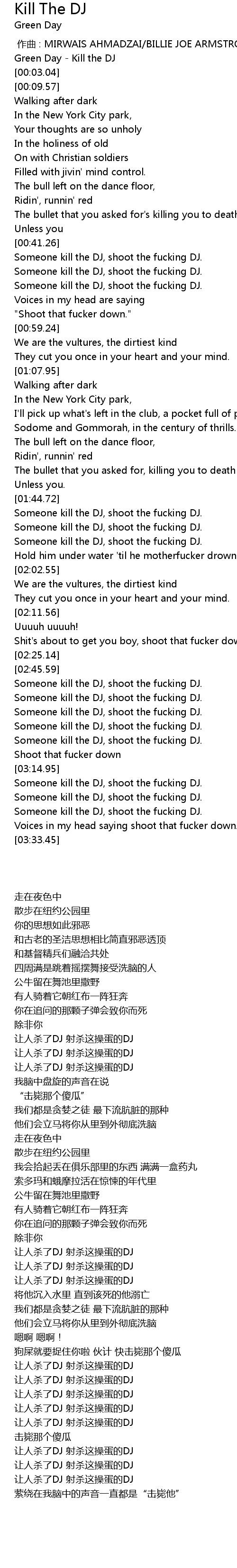 | [00:45.82] | Someone kill the DJ, shoot the fucking DJ. |