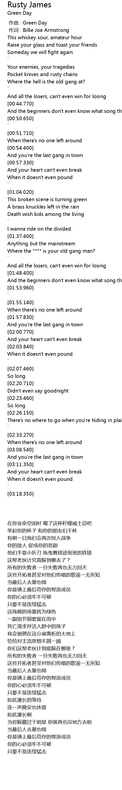 | [00:01.00] | zuò cí : Billie Joe Armstrong |