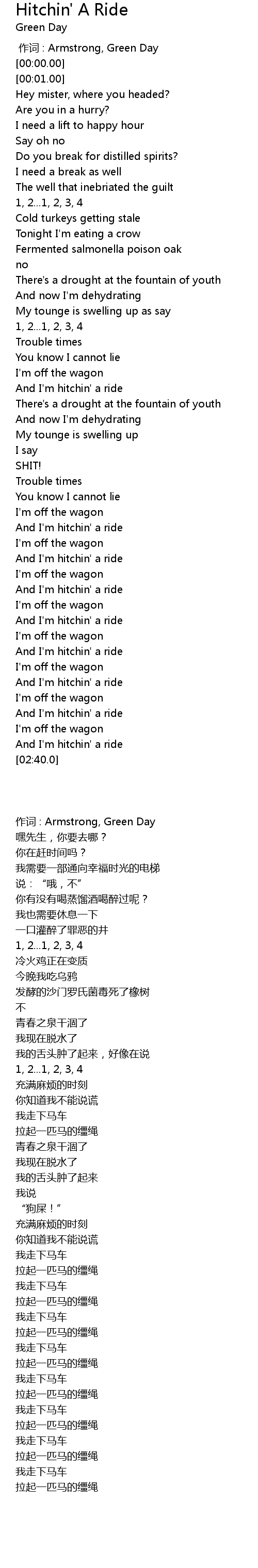| [00:00.00] | zuò cí : Armstrong, Green Day |