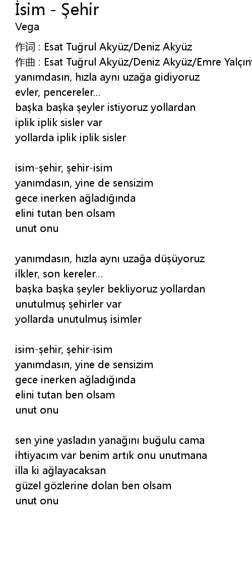 | 作词 : Esat Tuğrul Akyüz/Deniz Akyüz | |