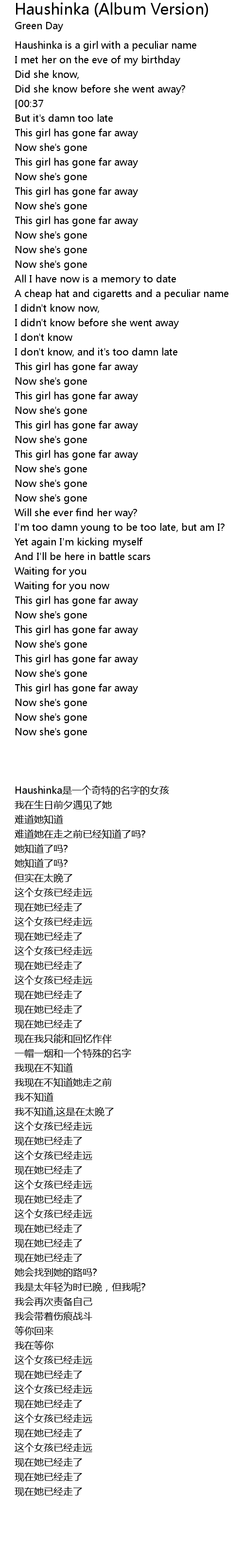 This girl has gone far away |