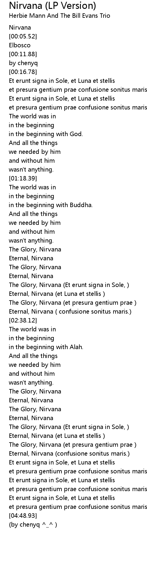 | [03:49.65] | Eternal, Nirvana confusione sonitus maris. |