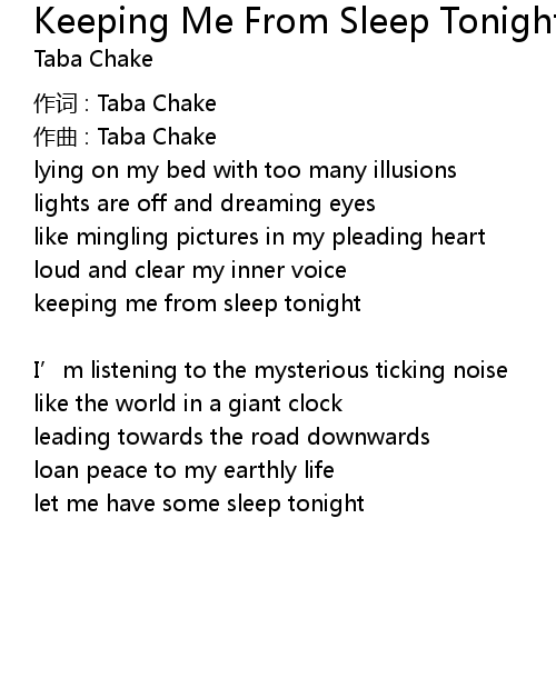 | 歌曲 | Keeping Me From Sleep Tonight |
