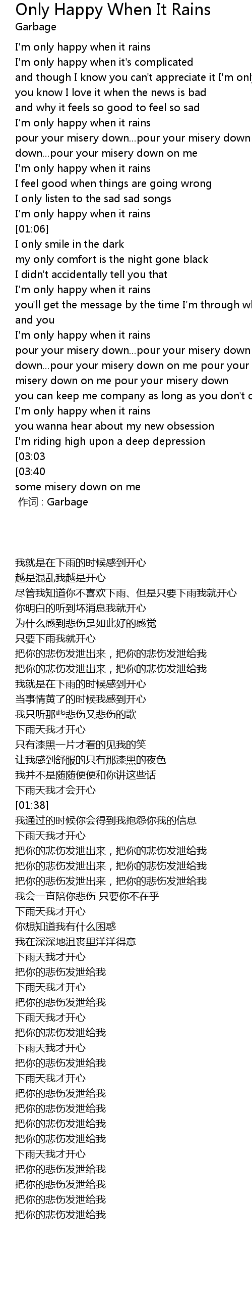| [01:01] | I'm only happy when it rains |