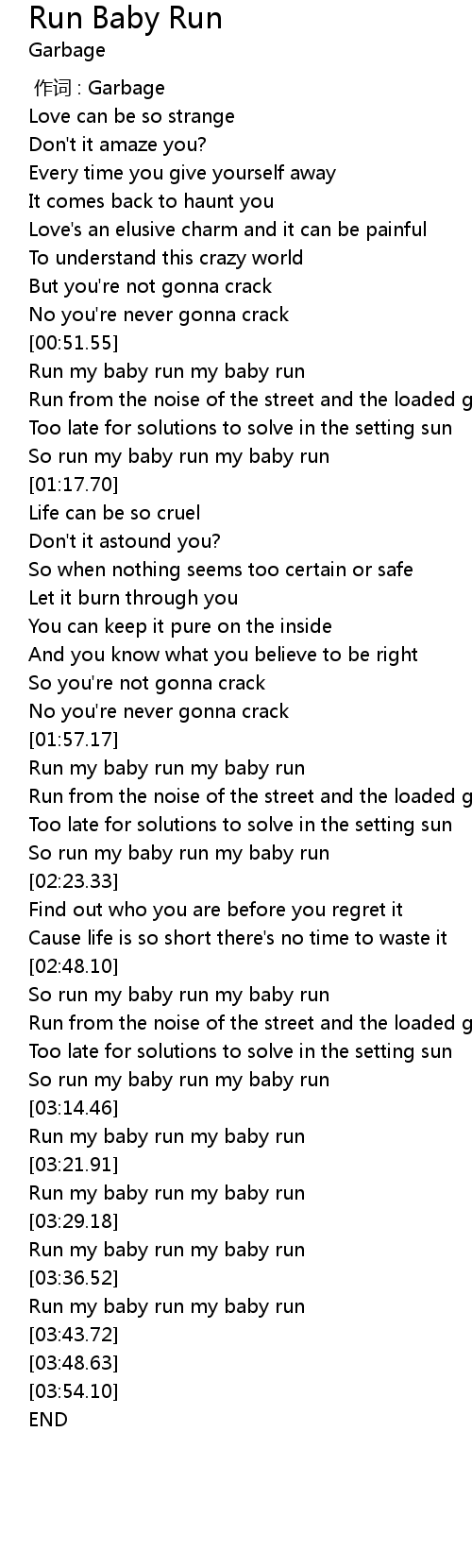 | [00:58.81] | Run from the noise of the street and the loaded gun |