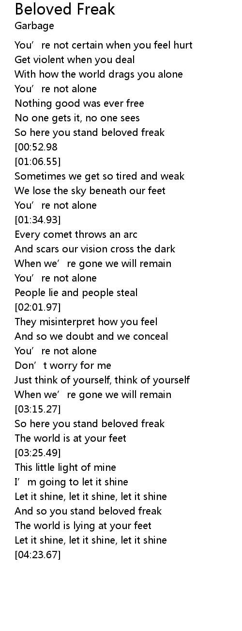 | [04:00.91] | And so you stand beloved freak |