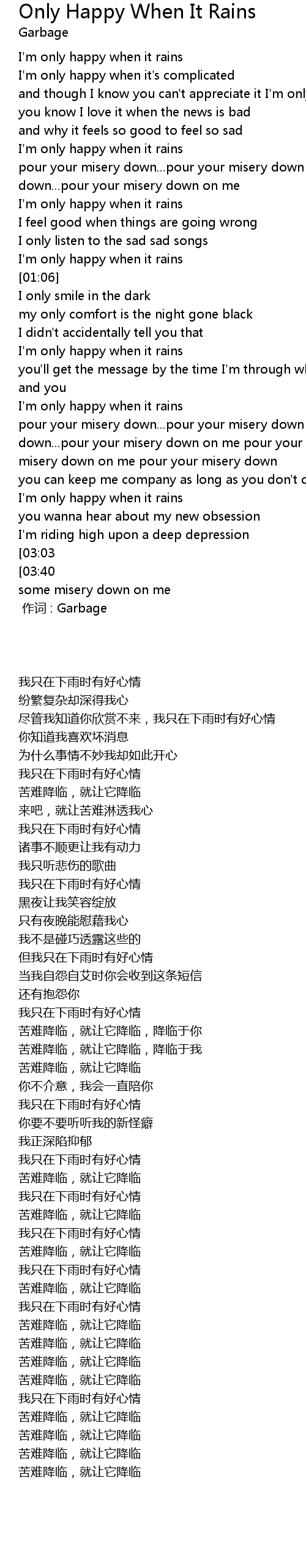 | 歌曲 | Only Happy When It Rains |
