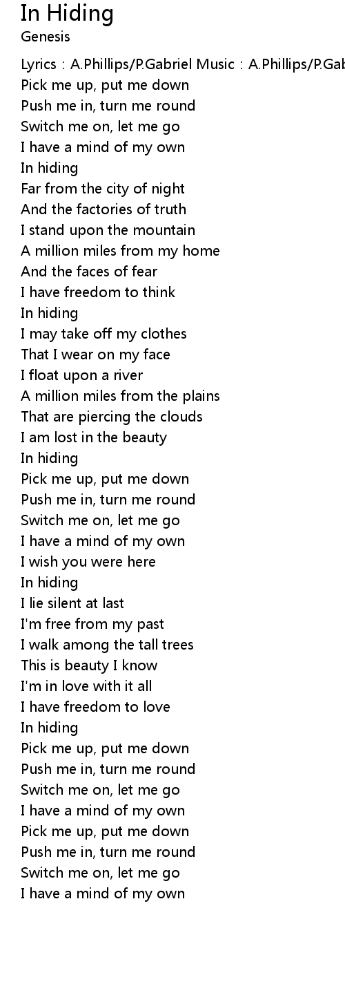 | Lyrics: A. Phillips P. Gabriel Music: A. Phillips P. Gabriel | |