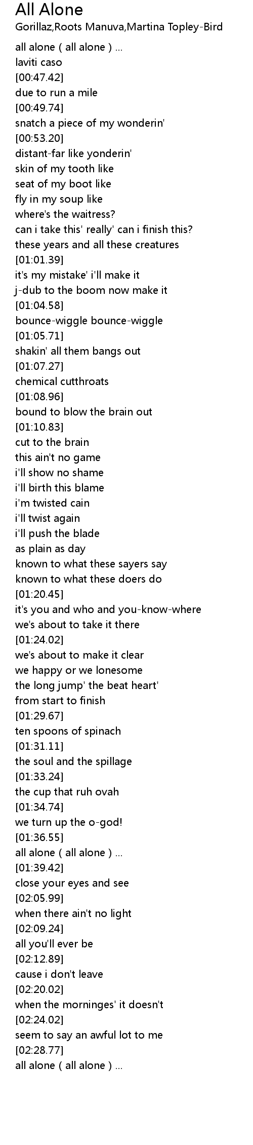 | [02:56.08] | all alone all alone... |