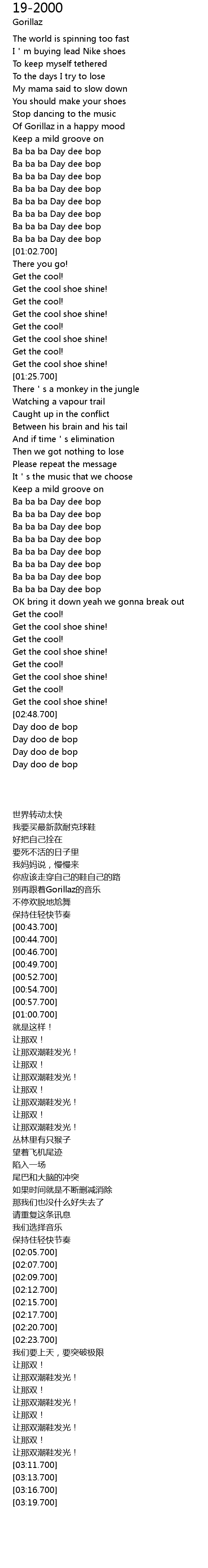 | [00:36.700] | 别再跟着Gorillaz的音乐 |