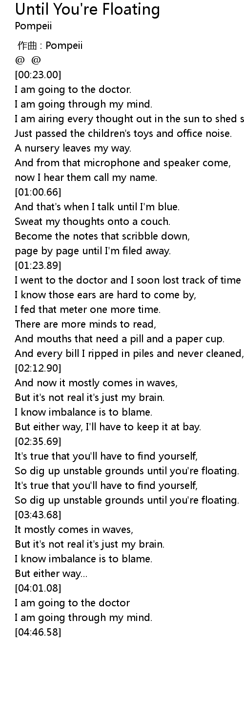 | [01:39.01] | I went to the doctor and I soon lost track of time |