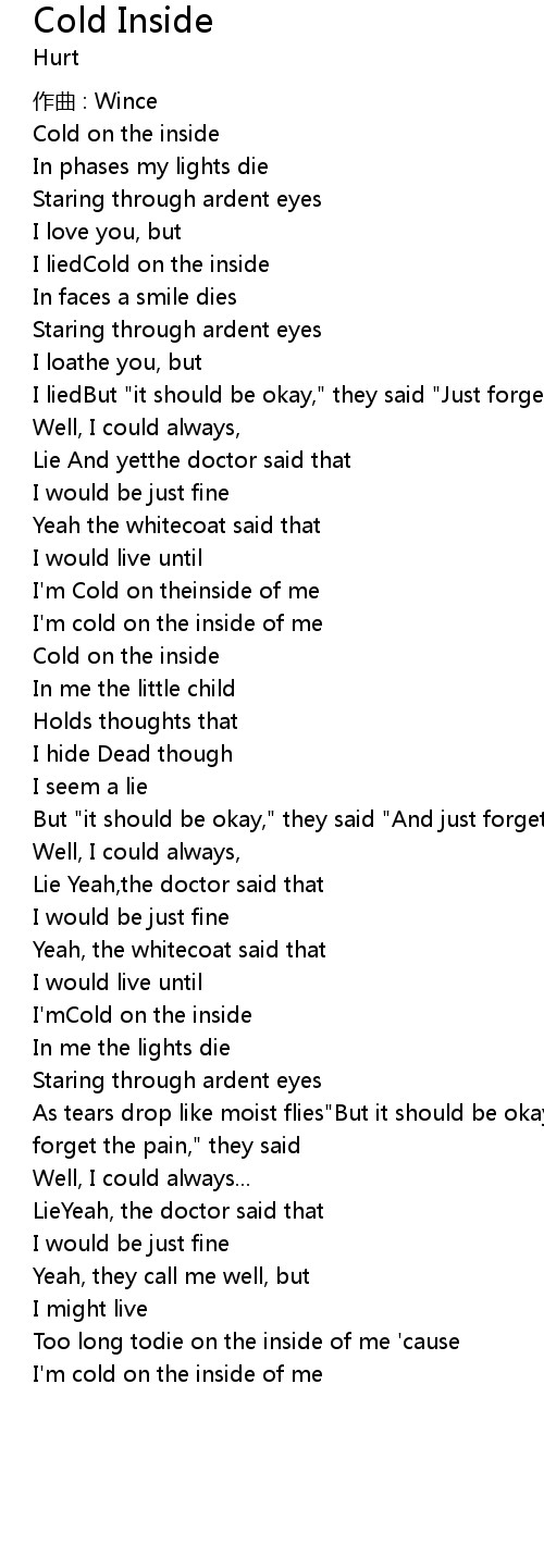 | I liedBut " it should be okay," they said " Just forget the pain," they said | |