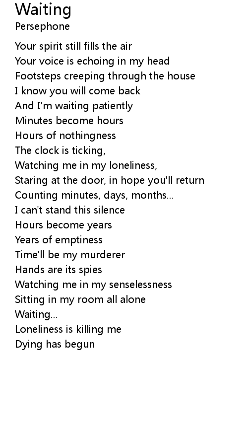 And I'm waiting patiently |