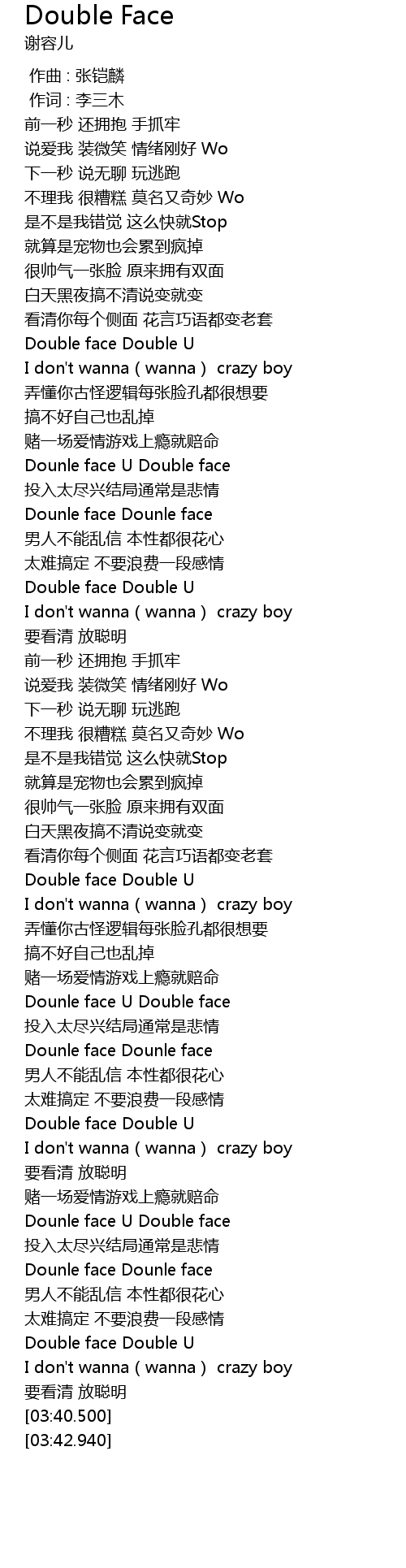 | [02:38.200] | Dounle face Dounle face |