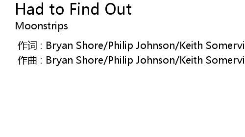 | 歌曲 | Had to Find Out |