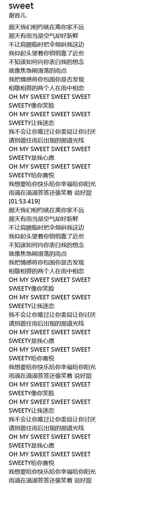 | [02:43.319] | SWEETY xiàng nǐ xiào liǎn |