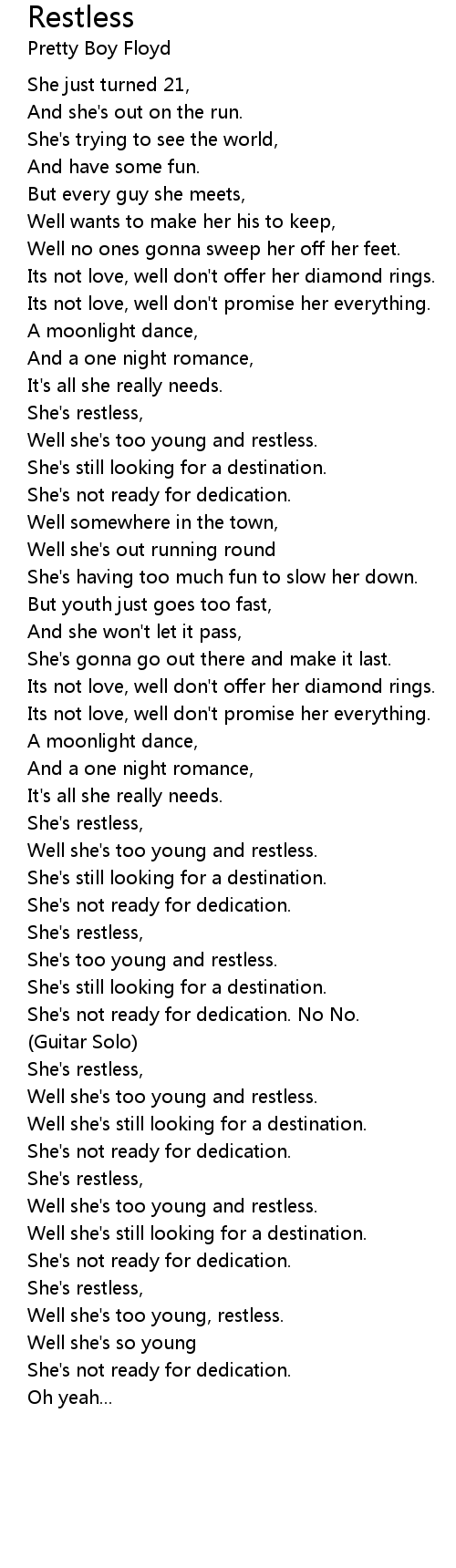 She's restless, |