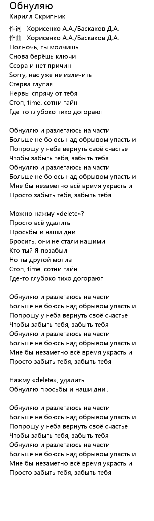作词 : Хорисенко А.А./Баскаков Д.А. |