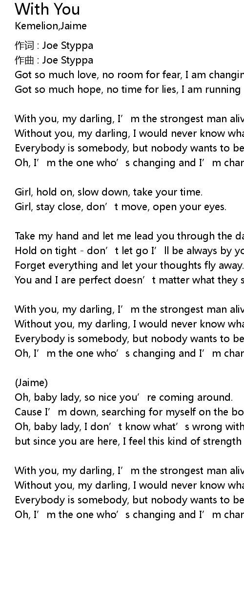 | Got so much hope, no time for lies, I am running side by side with you. | |