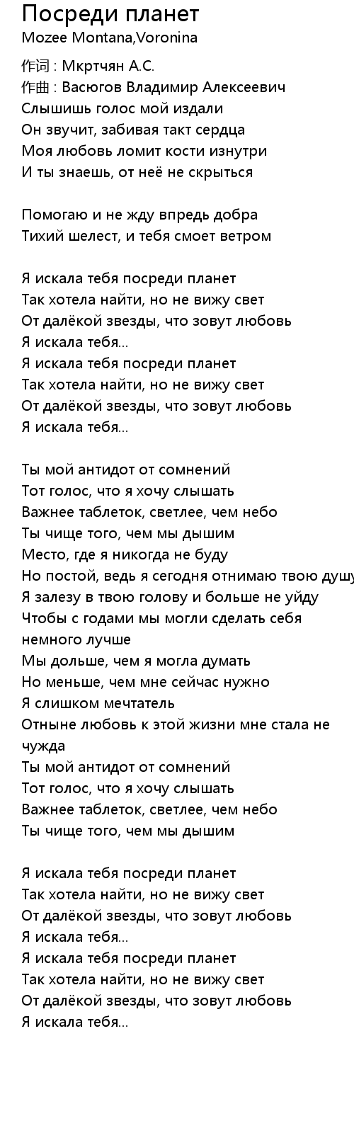 Посреди планет 歌词