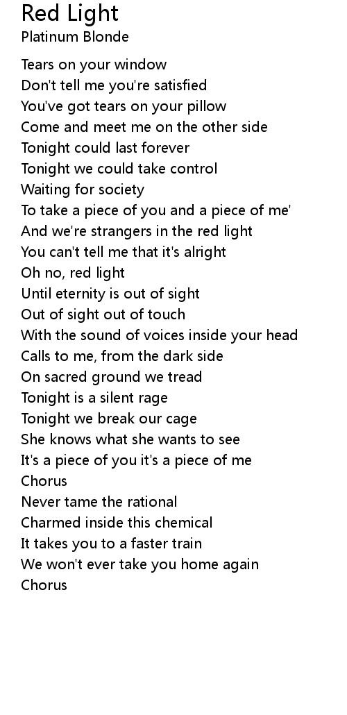 And we're strangers in the red light |