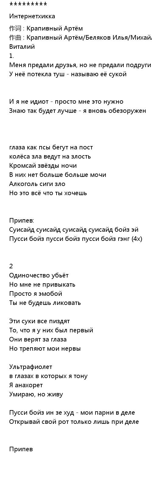 作词 : Крапивный Артём