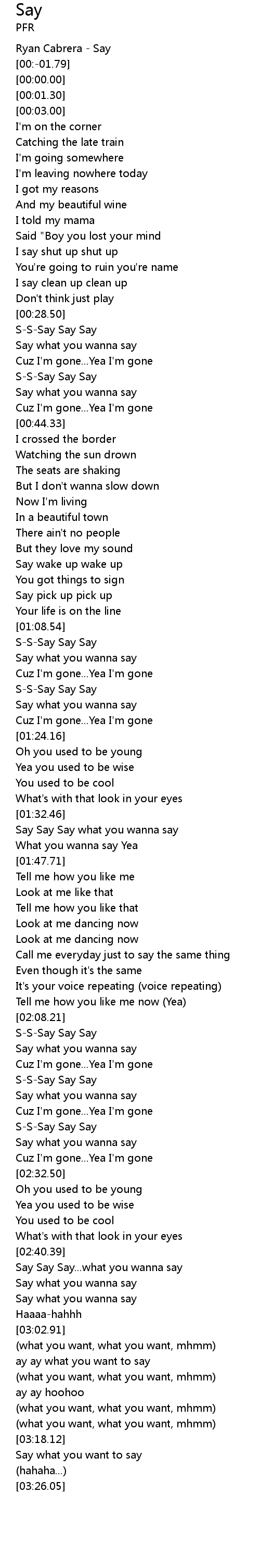 | [03:18.96] | Say what you want to say |