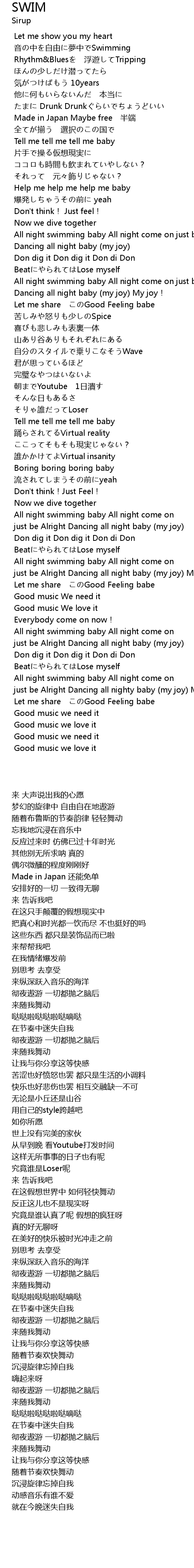 | [00:10.647] | 音の中を自由に夢中でSwimming |