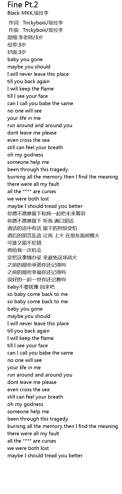 | [00:00.000] | zuò cí : Trickyboiii jī lā lǐ |