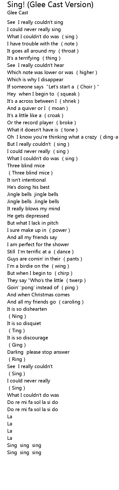 | 歌曲 | Sing! (Glee Cast Version) |