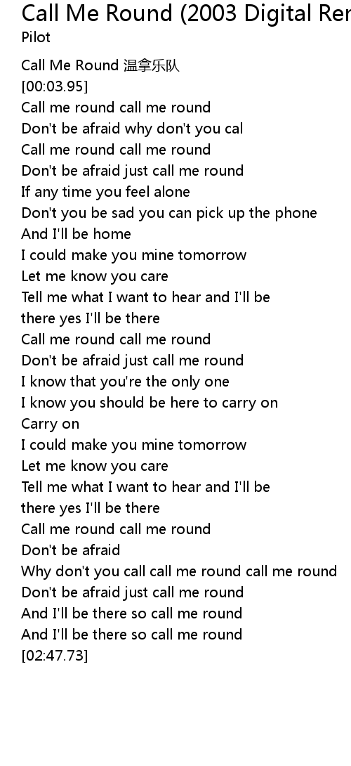 | [01:17.76] | Call me round call me round |
