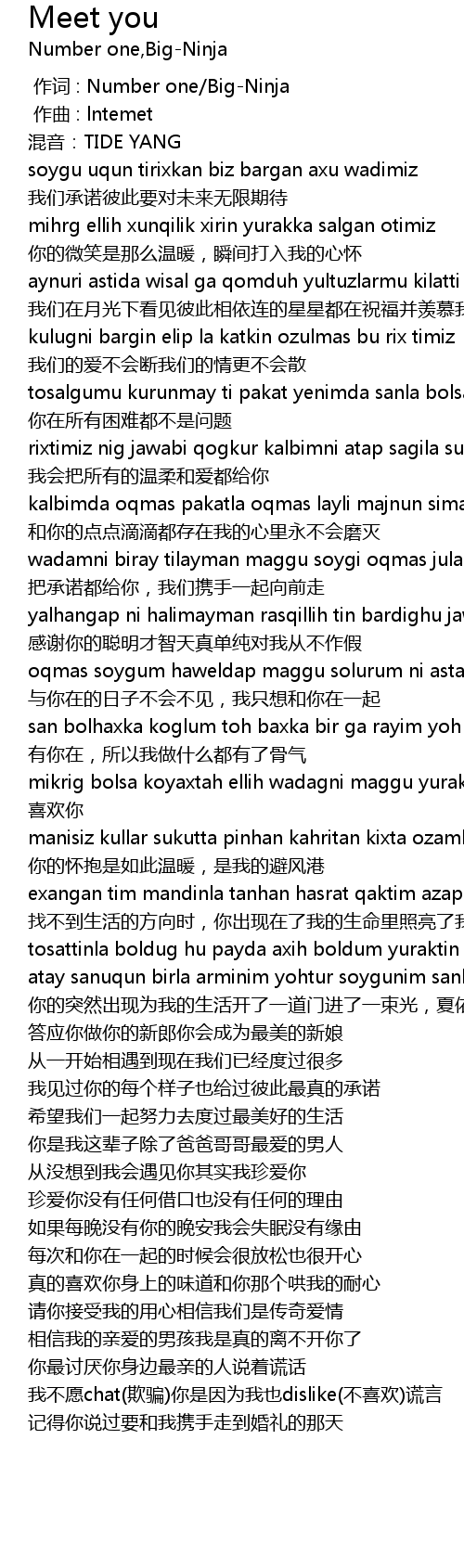 | [00:00.000] | 作词 : Number one/Big-Ninja |